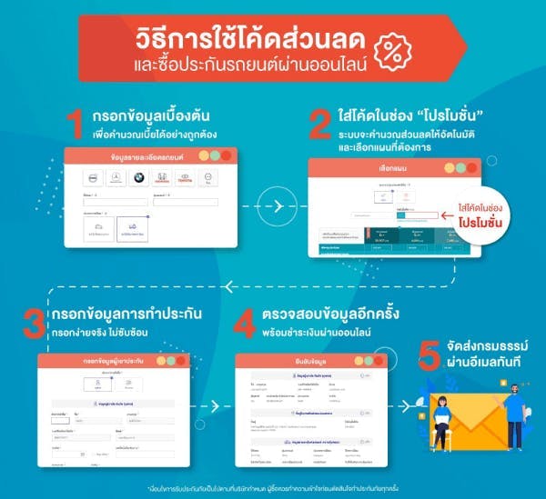 ● ส่วนลดค่าเบี้ยไม่สามารถโอน เปลี่ยน แลก หรือ ทอนเป็นเงินสดได้
