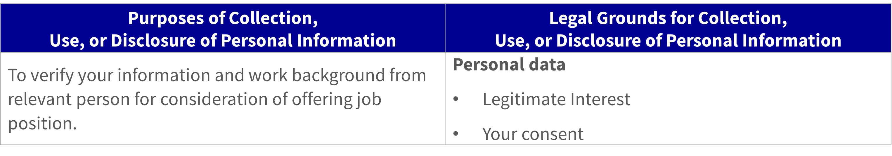 This privacy notice applies to your personal information and other people’s personal information relating with you (“Third Party”) that is necessary for your job application e.g., your family, reference person.
