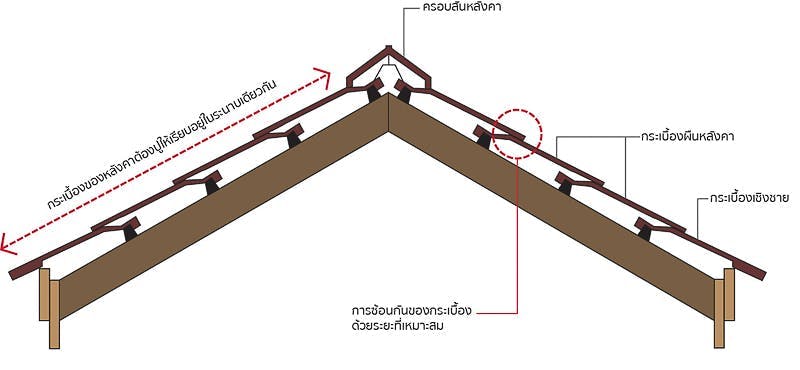 –> สาเหตุนี้ก็ต้องดูว่าเกิดจากปัญหาใดของ “ครอบ” หากเป็นปัญหาในส่วนปูนยึดครอบ ควรรื้อปูนที่พอกออกแล้วติดตั้งใหม่ หรือหากปัญหามาจากตัว ” ครอบ ” ที่เสื่อมสภาพก็ควรเปลี่ยนใหม่ไปเลย หรือบางทีก็เกิดจากวิธีติดตั้งที่ผิด เช่น วางแปคู่สันห่างเกินไป เป็นต้น