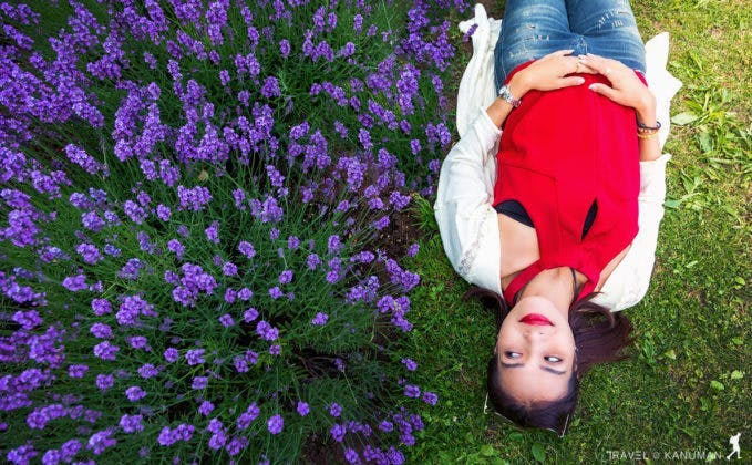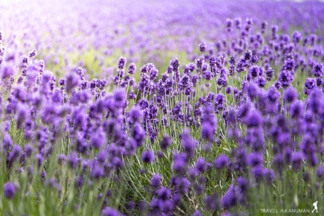 ที่นี่จะไม่เหมือนที่ญี่ปุ่น ถึงแม้จะเป็นทุ่งดอกไม้เหมือนกัน แต่บรรยากาศเงียบสงบกว่ามาก ไม่มีร้านรวงมาออกคึกคัก ไม่ได้มีตลาดขายของใหญ่โต มีเพียงทุ่งโล่งกว้างใหญ่สีม่วงสุดลูกหูลูกตาเท่านั้น เหมาะสำหรับคนชอบความสงบเป็นที่สุด