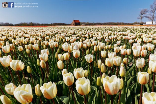 HOLLAND ได้ชื่อว่าเป็นประเทศแห่งทิวลิป ในช่วงฤดูใบไม้ผลิดอกทิวลิปหลากสีสันแข่งกันเบ่งบานไปทั่วทั้งบริเวณ ตลอดเส้นทางกว่า10 กิโลเมตร เราจะพบกับทุ่งทิวลิปสุดลูกตา สลับสีอย่างสวยงามที่สุด