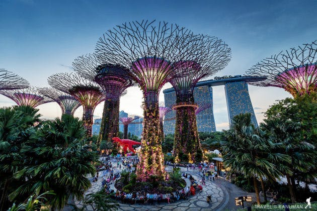 และที่เป็นจุดเด่นที่สุดอีกอย่างก็คือ SUPERTREE GROVE ที่เป็นต้นไม้ยักษ์ 18ต้น ทำเป็นสวนแนวตั้ง ตั้งเด่นประชันกับ อาคารเด่น ๆ ในบริเวณอ่าวอย่างไม่เกรงกลัวกันเลยทีเดียว