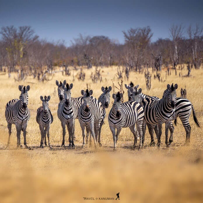 Herd of zebras on the african savannah