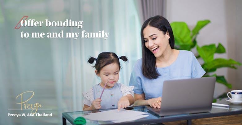 “ฉันชอบความยืดหยุ่นในเรื่องเวลาและสถานที่ทำงาน แอกซ่ามีนโยบายเรื่อง work from home สองวันต่อสัปดาห์ซึ่งฉันสามารถทำงานได้จากที่บ้านได้ใกล้ชิดธรรมชาติ อยู่กับแมวตัวโปรด และมีเวลาดูแลลูกๆ ได้ในทันทีที่เลิกงาน ฉันสามารถบาลานซ์ชีวิตการทำงานกับครอบครัว ได้อย่างลงตัว”